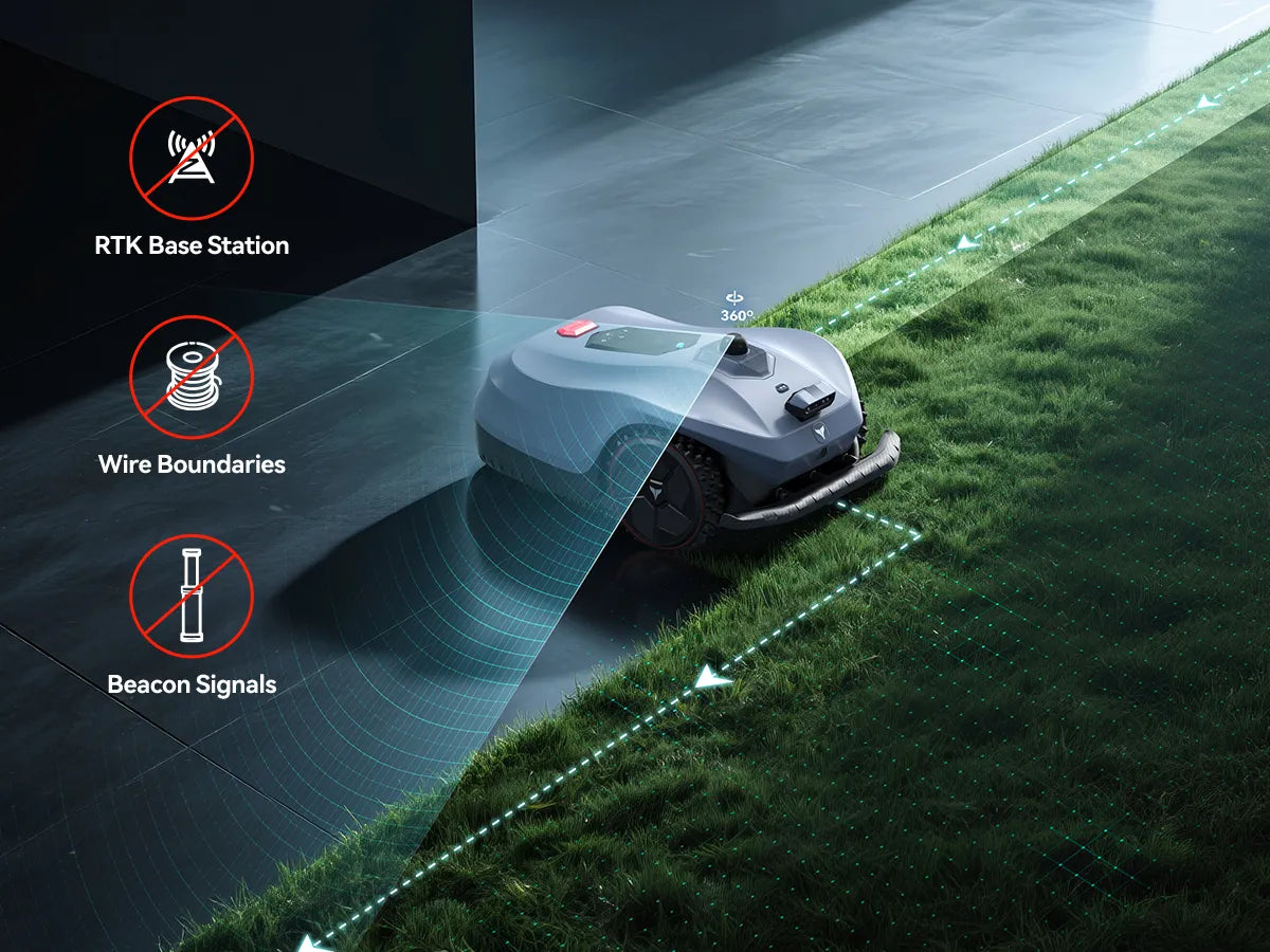 Automatically patrols and detects lawn edges to generate accurate cutting zones — no manual setup or boundary wire required.