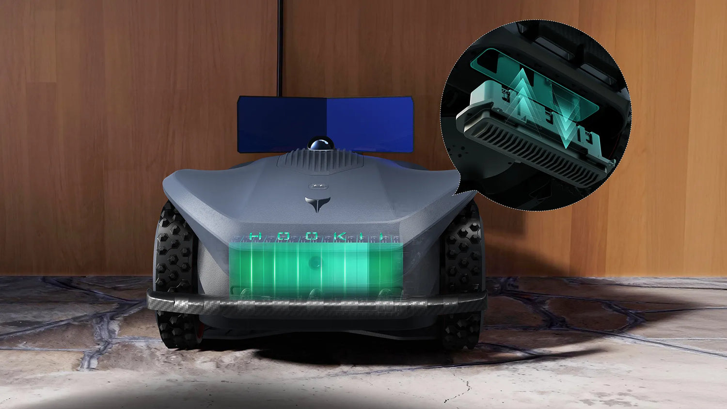 The Hookii Neomow X is equipped with a high-efficiency lithium battery that can work continuously for 2-3 hours on a single charge. The intelligent charging system ensures that it automatically returns to the charging station when the battery is low.